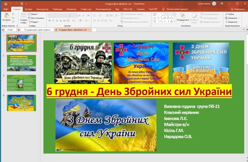 4 грудня 2023 року класним керівником групи Тб-31, Остапчуком С.А., був проведений урок мужності «Я рівняюсь на героїв» присвячений Дню Збройних сил України. Під час заходу було наголошено на таких...