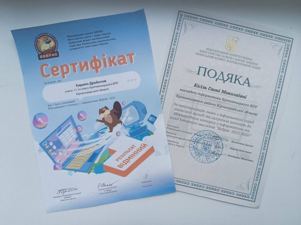 ПодробиціПідсумки участі у Міжнародному конкурсі з інформатики та комп’ютерного мислення «Бебрас»