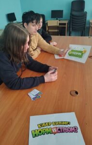 У форматі інтерактивної гри студенти зачитували ситуації з карток, що моделювали різні випадки онлайн-спілкування, та визначали: це допустима поведінка чи прояв кібербулінгу? Обговорення були жвавими та аргументованими, адже кожен прагнув відстояти власну позицію.