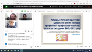 18 січня 2022 року методистом НМК ПТО у Кіровоградській області Манукян Н.А. було організовано методичне консультування з проблеми “Актуальні питання підготовки здобувачів освіти закладів професійної освіти до складання ЗНО у 2022 році”. Спікером на якому була викладач математики Кропивницького вищого професійного училища  Кривенко Н.А., яка розкрила питання підготовки учнів училища до ДПА (ЗНО) з математики. Під час доповіді розкрила питання якісної підготовки учнів до ЗНО з математики, психолого-педагогічні закономірності навчання математики здобувачів професійної освіти та методику навчання окремих розділів і тем курсу математики.