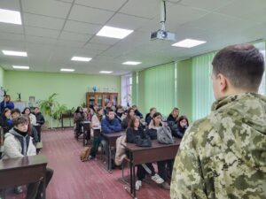 Під час зустрічі Божор Д.Ю. розповів учням про особливості роботи засобів РЕБ в смузі оборони.