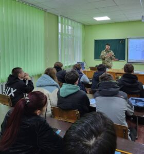 10 листопада 2025 року майстер виробничого навчання, викладач з професії “Оператор з обробки інформації та програмного забезпечення”, а нині начальник радіоелектронної боротьби військової частини А4935 майор Божор Дмитро Юрійович, провів зустріч зі студентами І та ІІ курсів, які навчаються за професіями: “Оператор з обробки інформації та програмного забезпечення; Адміністратор” та ” Оператор електронно-комунікаційних послуг; Касир ( в банку).