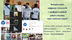 Спікером виступила заступник директора з навчально-виховної роботи Кропивницького ВПУ Наталія Анатоліївна Кривенко, яка представила комплексну стратегію впровадження цифрових технологій у профорієнтаційну роботу нашого закладу.