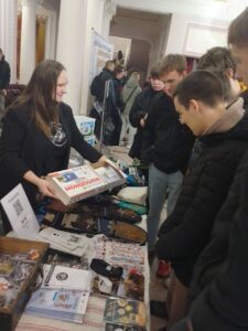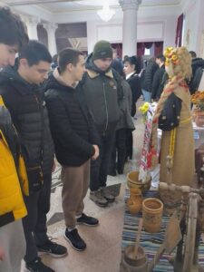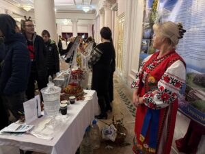 Під час заходу студентів зустріли учасники Виставки в національних костюмах розповідаючи про українські традиції та звичаї.
