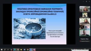 Викладач географії Дмитро Гамлій представив доповідь «Практико-орієнтоване навчання географії в закладах професійної освіти: впровадження GeoSKILLS». Він підкреслив, що використання GeoSKILLS є ефективним інструментом модернізації освітнього процесу. Такий підхід сприяє формуванню конкурентоспроможних фахівців із навичками роботи з цифровими та просторовими даними, підвищує мотивацію до навчання, розвиває критичне й просторове мислення та допомагає підготувати здобувачів до викликів сучасного глобалізованого світу.