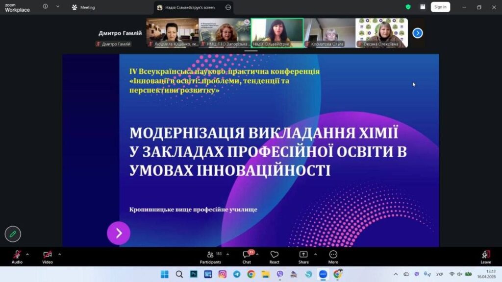 16 квітня 2026 року викладачі Кропивницького ВПУ Надія Сільвейструк та Дмитро Гамлій виступили спікерами IV Всеукраїнської науково-практичної конференції «Інновації в освіті: проблеми, тенденції та перспективи розвитку», м. Запоріжжя.